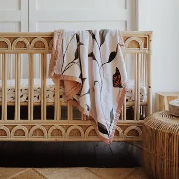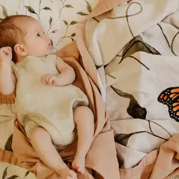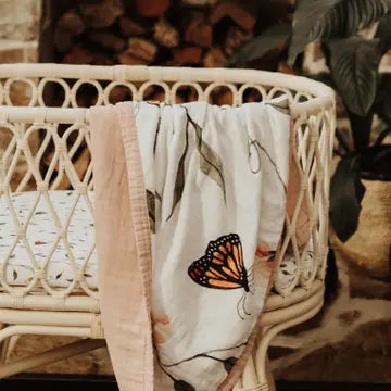 The Snuggly Blanket™ is made from 8 dreamy layers of our custom milled, 100% organic cotton muslin fabric. Perfectly fluffy, it makes for a buttery soft landing for sweet baby cheeks. These blankets are ideal for cuddling and wrapping your baby in to bring them warmth and comfort. Also used for car seats, prams, tummy time, and anytime you want an extra layer of coziness for your little love. They are a beautiful addition to your baby’s nursery or child’s bedroom. * 100% Gots certified organic cotton muslin * Heirloom quality * 8 Layers of our dreamy organic muslin * Generous Size 120cm x 120cm * Reversible * Lightweight, breathable and oh-so soft! * Suitable for all seasons and climates * Exclusive designs to Snug as a Bub + Co. * Eco-friendly and sustainable packaging