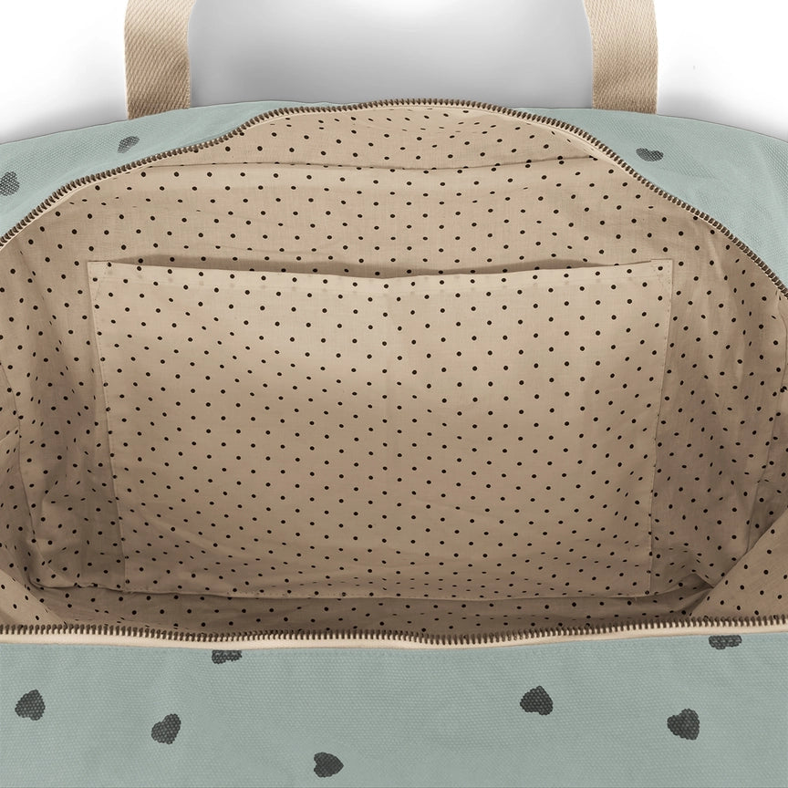 This bowling bag will work great as a diaper bag or overnight bag for a weekend getaway. It is super practical and features 2 big exterior pockets. Blue Spray heart printed 2 pockets outside Inside pockets Composition : 100% cotton Lining : coated cotton waterproof interior Dimensions : width 22 x length 42 x height 28 cm Lavage en machine à 30° Made in Portugal OEKO TEX certified DIAPER BAG / DIAPER BAGS / BABY / BABY ESSENTIALS / BABY ACCESSORY / WEEK-END BAG / SPORT BAG / HANDBAGS / BAGS / MATERNITY BAG
