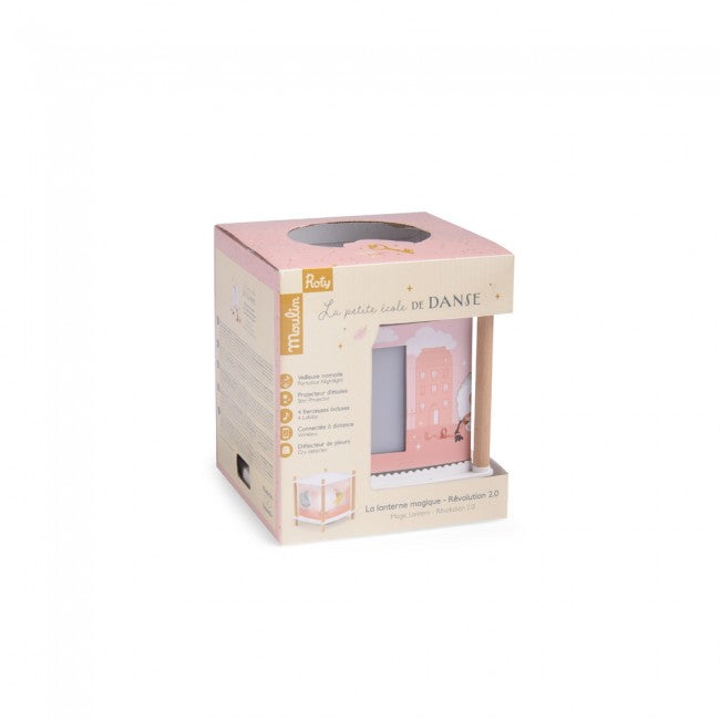 Magic lantern to lull baby to sleep, decorated with little mice dancing around the bedroom. This multi-functional lantern projects stars, plays 4 lullabies, connects remotely and even detects the sound of crying! USB cable included. In collaboration with Trousselier.